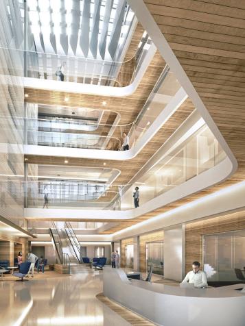 A rendering of the interior of the Nancy Friend Pritzker Psychiatry Building. [Image: ZGF Architects]